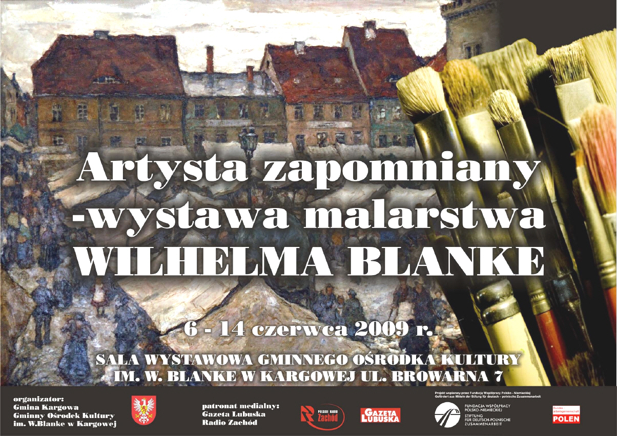 ".... In seinem Werk finden wir Bilder, die die nächste heimatliche Umgebung zeigen, es ist eine Art von Regions-Chronik. Wilhelm Blanke hielt das Leben der Kleinstädte mit ihren Rathäusern, Gassen und Märkten fest. Dank seiner Gemälde können wir nach fast hundert Jahren das Panorama von Kargowa auf "Im Land der Windmühlen" oder "Obratal" erkennen. Die Stadt bewundern wir auf den Gemälden "Marktplatz" oder "Rathaus" und einen besonderen Platz nimmt das 1926 gemalte und der Stadtverwaltung geschenkte große Werk "Jahrmarkt in Unruhstadt" ein.... Seit einem Jahr trägt das Kulturhaus von Kargowa den Namen von Wilhelm Blanke, eines Menschen, dessen Schaffen zwar Ausdruck der Vergangenheit ist, doch wie wichtig und notwendig für unsere Gegenwart. Die jetzige Ausstellung, die dem Schaffen des Malers gewidmet ist, nähert seine Person den heutigen Bewohnern der Stadt und der Region und ist ein Ausdruck polnisch-deutscher Zusammenarbeit." Herr Longin Dziezyc, Kustos der Malerei, Museum Ziemi Lubuskiej in Zielona Gora.