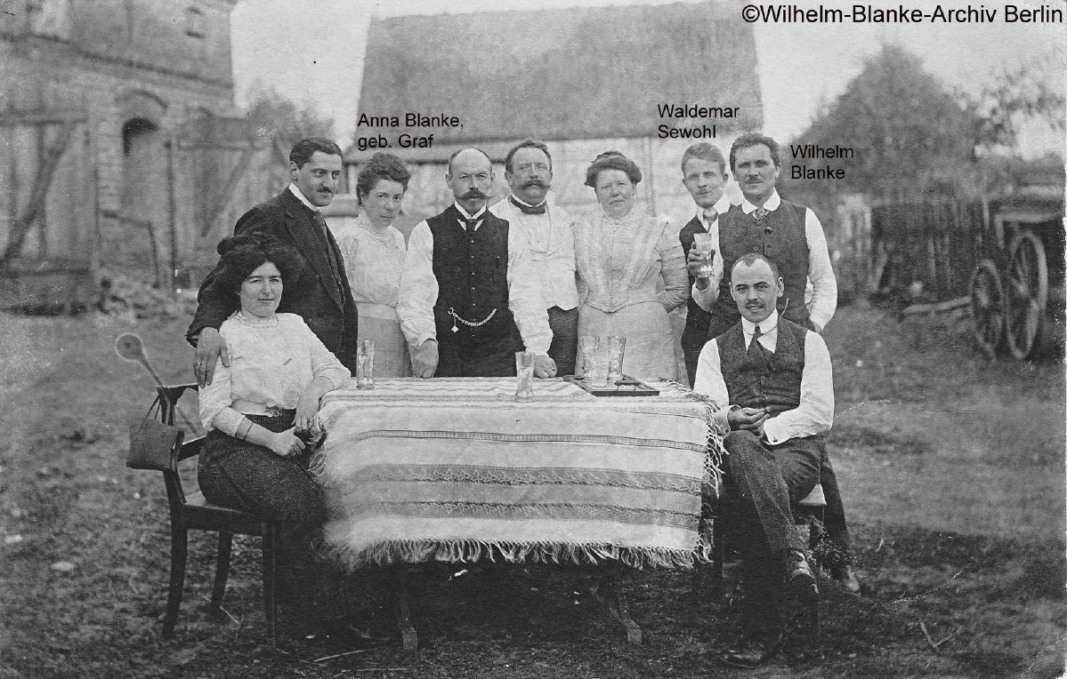 Wir bitten dringend um Mithilfe! Gesucht werden die fehlenden Namen der Malerfreunde von Wilhem Blanke auf dem unten stehenden Foto (zum Vergrößern bitte anklicken). Es handelt sich um einen Pfingstausflug nach Neuzelle an der Oder (wahrscheinlich) am 25. Mai 1911, wo auch gemeinsam gemalt wurde. Bekannt sind nur Wilhelm Blanke, seine Ehefrau Anna sowie der Malschüler Waldemar Sewohl. Das Foto wurde aufgenommen von dem Steglitzer Erich Kaehler (1886-1946). Wir würden uns freuen, wenn Sie uns helfen könnten: Tel. 030 3918379 oder per E-mail (s. Rubrik [Kontakt]).